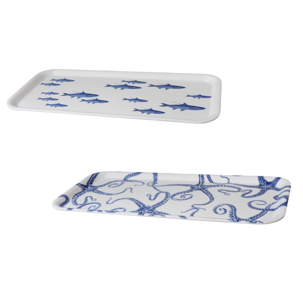 Tabaka servirje, melaminë, e bardhë/blu, 34x17 cm