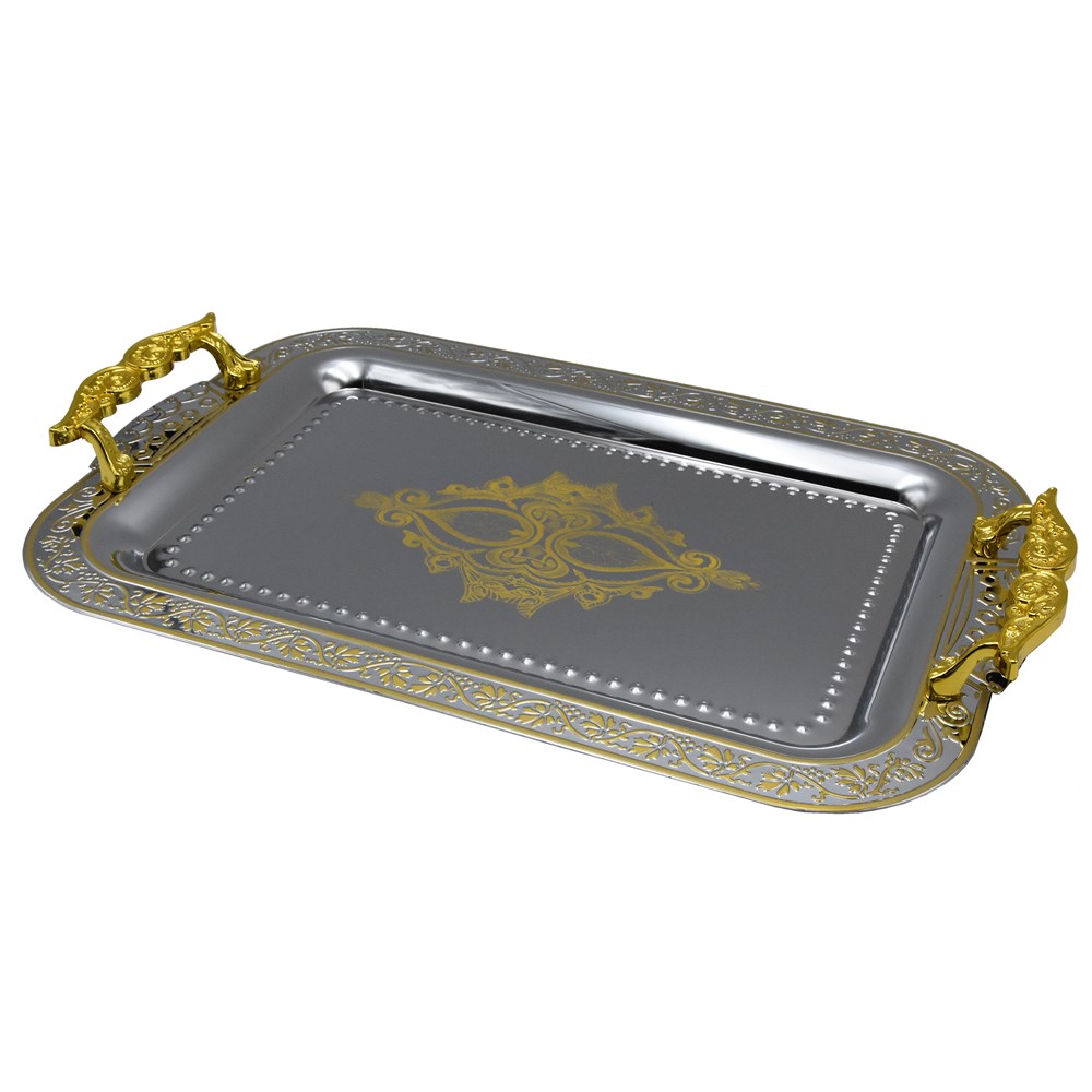Tabaka servirje, metalike, argjend, 51x35 cm
