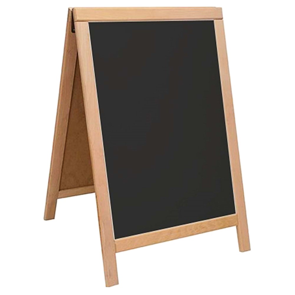 Tabelë e zezë, me dy anë dhe me këmbë, me kornizë prej materiali druri, me përmasa 50x70 cm, e cila është e përshtatshme për të shkruar me shkumës. Përdoret nga baret dhe restorantet për të shkruar menu-të e ndryshme dhe ofertat ditore, ose vendoset në restorantet e mëdha për të afishuar listën e të ftuarve për një sallë të caktuar. Ky produkt është i përshtatshëm për përdorim nga hotele, bare, restorante, piceri, restorante fast-food, etj.