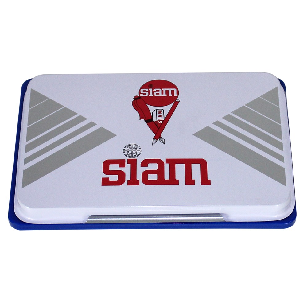Tampon vule i mesëm, prej materiali metalik dhe sfungjeri, në ngjyrë blu, i cili përdoret për vendosjen e vulave në dokumente të ndryshme, në shkolla, zyra, kancelari, institucione administrative, arkiva, institucione financiare, institucione ligjore, etj. Boja thahet shpejt dhe është rezistente ndaj ujit pas aplikimit. Ky produkt është i përshtatshëm për përdorim me bojë vule ngjyrë blu (55610).