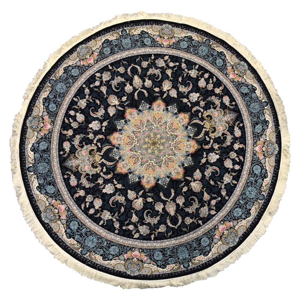 Tapet Persian i rrumbullakët, 100% akrilik, blu e errët me ngjyra të ndryshme, Dia. 200 cm