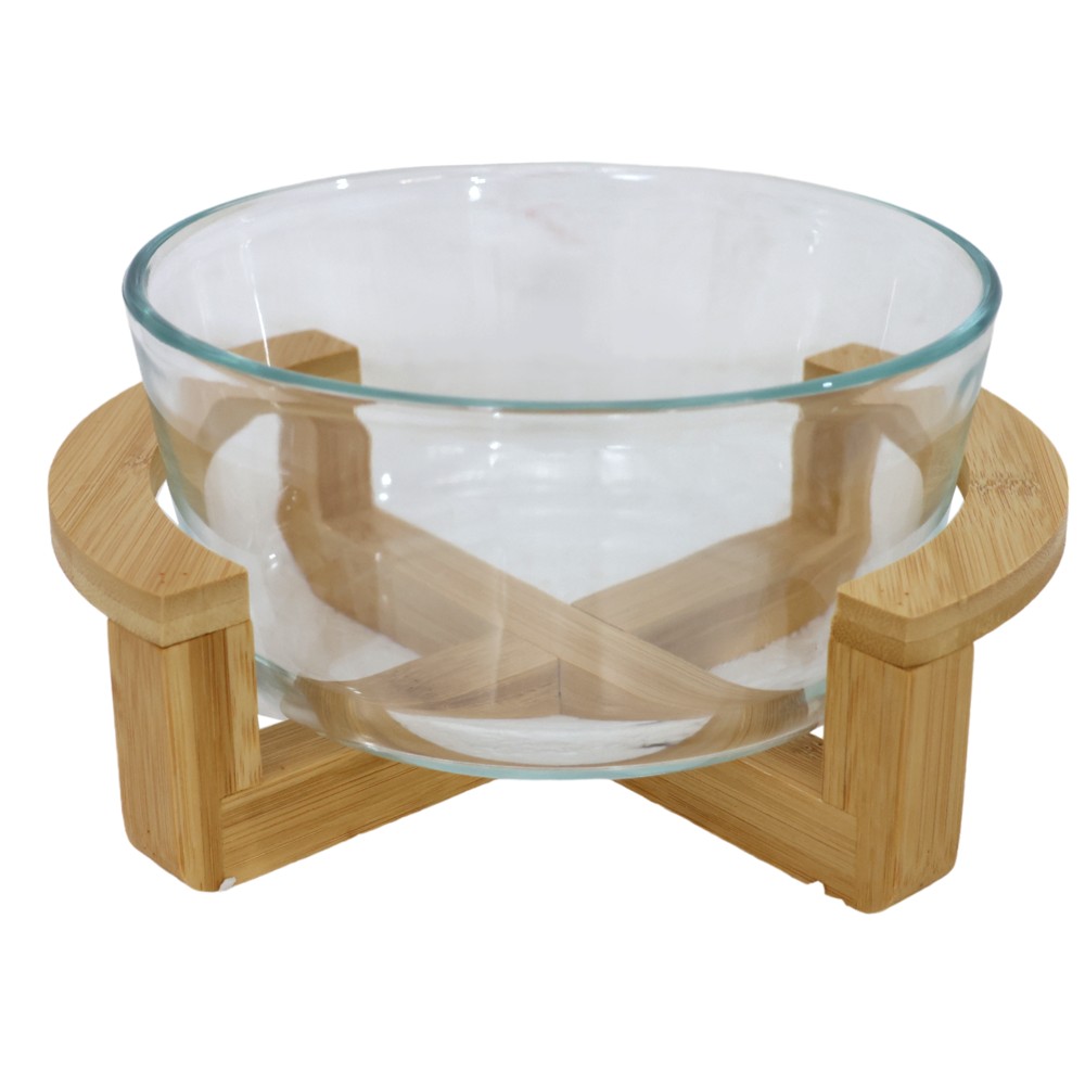 Po vlerësoni:Tas me stendë, qelq/bambu, transparente/kafe, Dia18xH11 cm