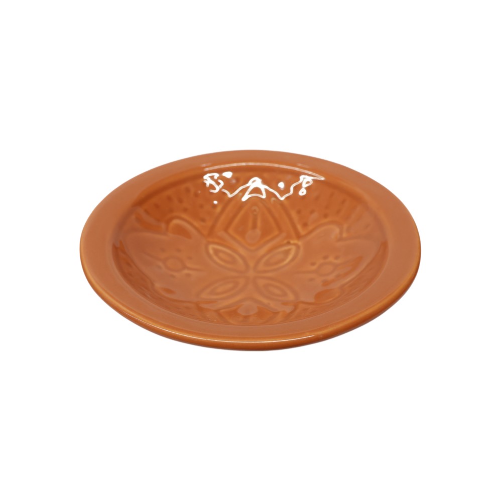Ky tas elegant është i punuar me dorë nga qeramika e lartë cilësore në një ngjyrë terrakotë të bukur. Diametri i tij prej 15 cm dhe lartësia prej 4 cm e bëjnë të përshtatshëm për një larmi përdorimesh. Ngjyra e terrakotës shton një element të ngrohtë dhe të tokës, duke e bërë atë një shtesë e shkëlqyer për çdo tryezë. Çdo tas është një vepër arti unike, me variacione të vogla në ngjyrë dhe teksturë.
