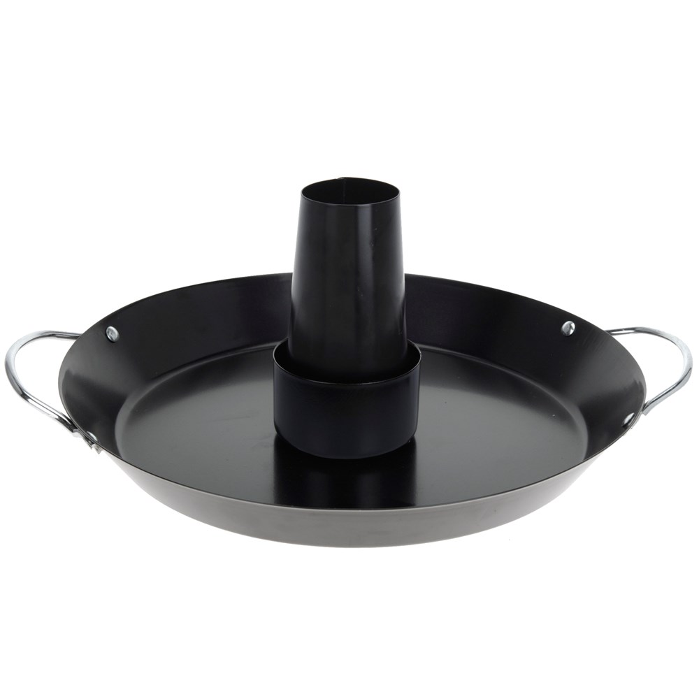 Mbajtës vertikal për pulë. Gjëja e zgjuar në lidhje me metodën e gatimit është se yndyra për pulën shkon poshtë, në fund të skarës. Përdoret edhe në furrë. Ju, gjithashtu, mund të skuqni edhe perime njëkohësisht. Është kundër ngjitjes. Material çeliku.