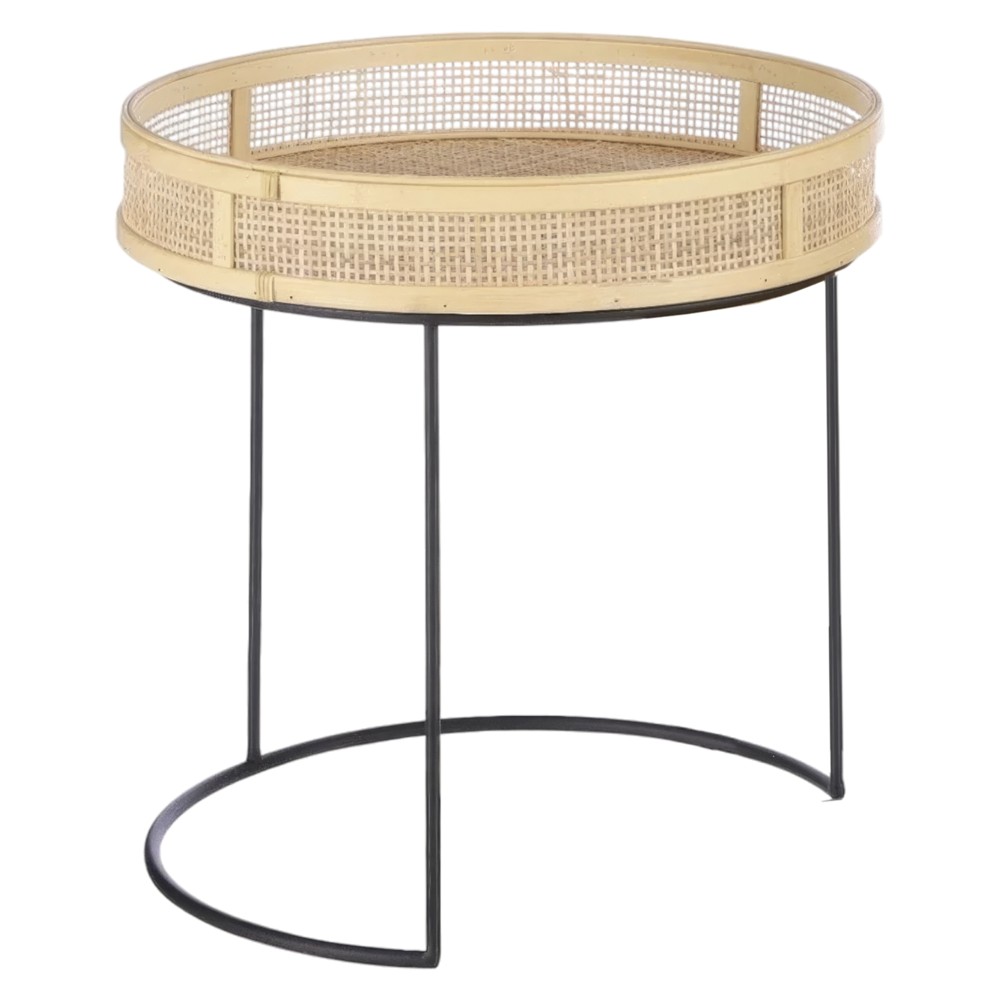 Tavolina anësore "Leandro" është një element dekorativ dhe funksional i dizajnuar për të shtuar stil dhe përshtatshmëri në ambiente të ndryshme të shtëpisë tuaj. Tavolina është e ndërtuar me një kombinim të metalit dhe bambusë. Struktura metalike siguron stabilitet dhe qëndrueshmëri, ndërsa sipërfaqja e bambusë ofron një pamje të ngrohtë dhe të natyrshme. Ajo mund të përdoret si një tavolinë anësore për të vendosur objekte të ndryshme si vazot me lule, libra, ose pijet, gjithashtu ajo mund të shërbejë si një objekt dekorativ për të shtuar në ambjent stil dhe elegancë.