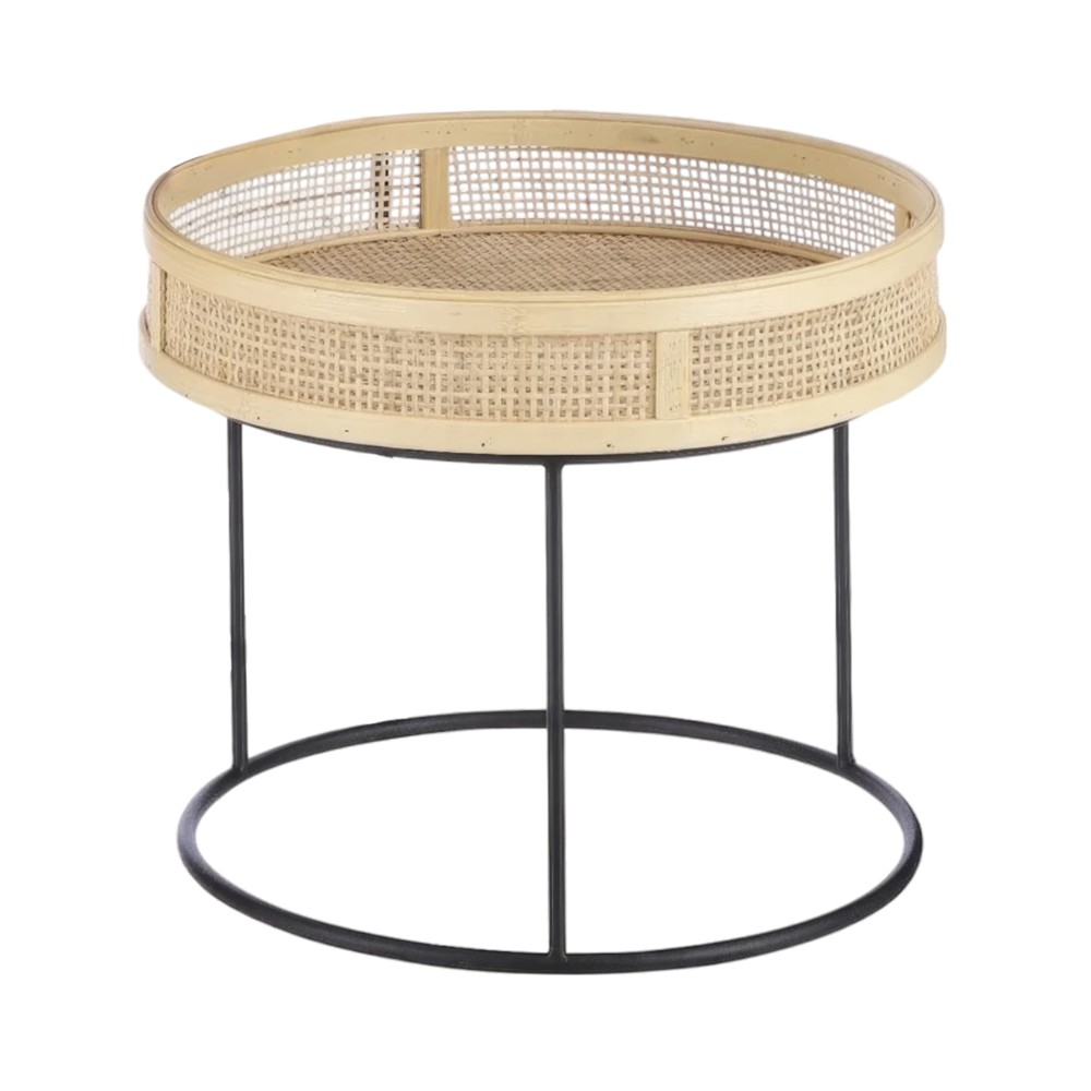 Tavolina anësore "Leandro" është një element dekorativ dhe funksional i dizajnuar për të shtuar stil dhe përshtatshmëri në ambiente të ndryshme të shtëpisë tuaj. Tavolina është e ndërtuar me një kombinim të metalit dhe bambusë. Struktura metalike siguron stabilitet dhe qëndrueshmëri, ndërsa sipërfaqja e bambusë ofron një pamje të ngrohtë dhe të natyrshme. Ajo mund të përdoret si një tavolinë anësore për të vendosur objekte të ndryshme si vazot me lule, libra, ose pijet, gjithashtu ajo mund të shërbejë si një objekt dekorativ për të shtuar në ambjent stil dhe elegancë.