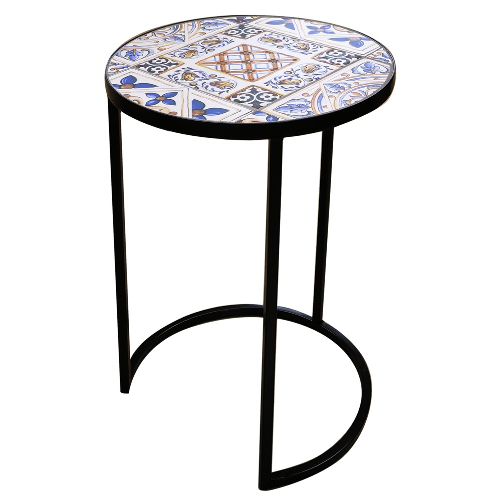 Tavoline anesore Mosaic, metal/qeramike, strukture e zeze, suprine e bardhe/blu, D38xH52 cm