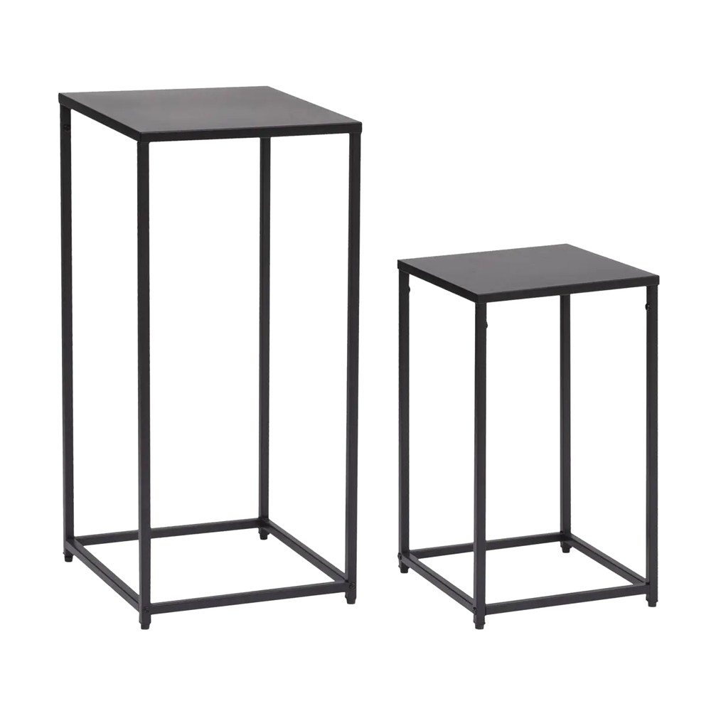 Tavolinë anësore, Gota,material çelik,ngjyra e zezë. Përmasa 30x30xH54.5 cm dhe 34x34xH74 cm. E përkryer për një pamje joshëse moderne sjell stilin bashkëkohor në hapësirën tuaj. Nuk ka rëndësi në vendoset pranë një divani ose pranë një shtrati, tavolinat e këndit janë zgjedhje e preferuar dhe tepër praktike