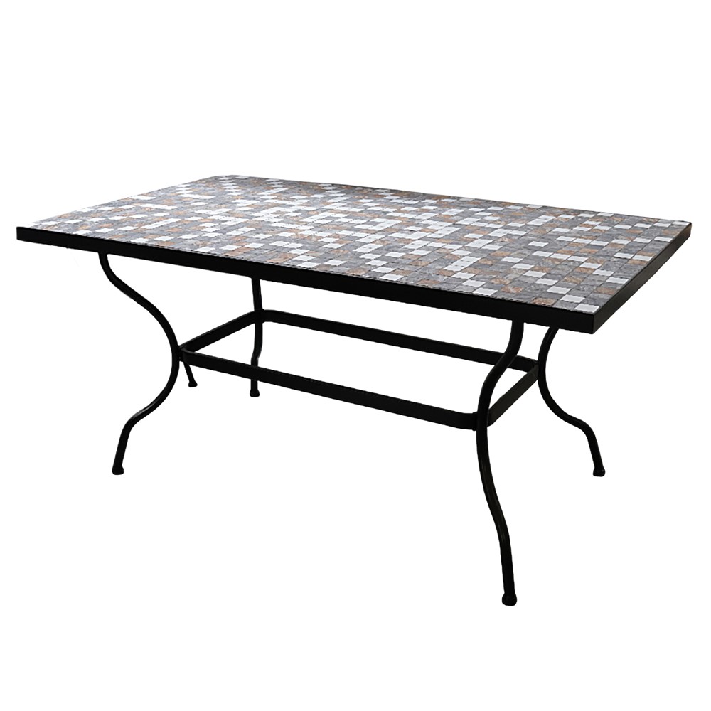 Tavolina drejtëkëndore "Mosaic" është një ndërthurje e bukur e metalit dhe ngjyrave të ndryshme të qeramikës që krijon një pamje tërheqëse dhe të veçantë në ambientin tuaj. Me një formë drejtëkëndore dhe një mozaik qeramikë të përbërë nga ngjyra të ndryshme dhe modele, kjo tavolinë sjell një ndjenjë artistike dhe një prekje estetike në ambient.