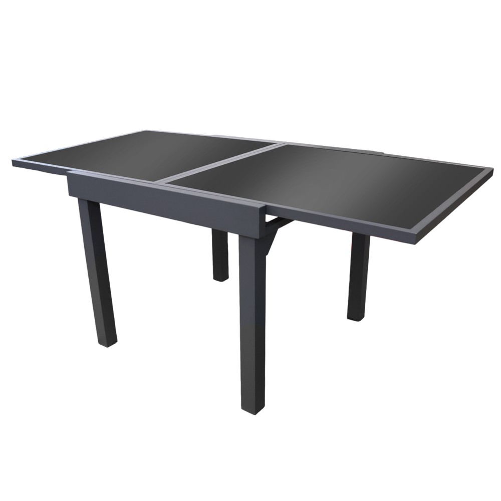 Tavolinë e zgjatueshme me xham temperuar, alumin, gri antrazit, 135-270x90xH75 cm