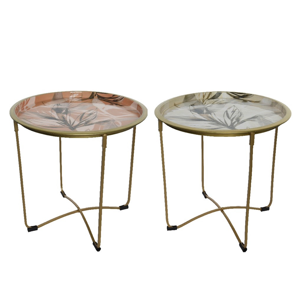 Tavolinë këndi, metalike, kremi/terrakotë, Ø46 xH46 cm