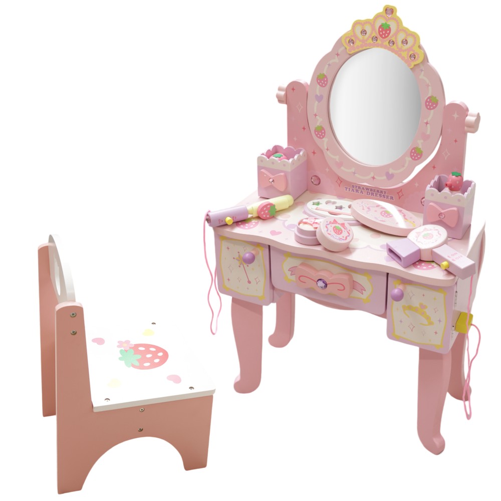 Tavolina make up për fëmijë, e bërë nga dru dhe me përmasa 71x22x42 cm, vjen në ngjyrë rozë. E dizajnuar për të stimuluar imagjinatën, ajo ofron një hapësirë të shkëlqyer për lojëra dhe krijimtarinë. Me stil modern, kjo tavolinë është ideale për çdo dhomë, duke bërë lojën më argëtuese për vajzat.
