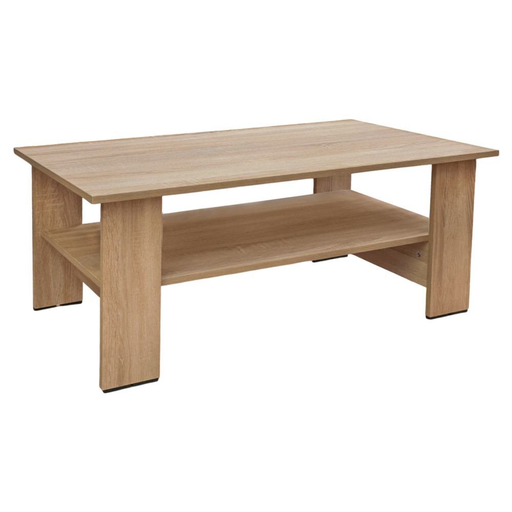 Tavolina është një zgjedhje e shkëlqyer për të ekspozuar objekte të dekorimit ose koleksionet tuaja në një mënyrë elegante. Krijuar nga melaminë me cilësi të lartë me ngjyrë sonoma, kjo mobilje ofron qendrueshmëri dhe një pamje moderne plot elegancë. Me një kombinim të përsosur të formës dhe funksionit, tavolina është zgjedhja e përshtatshme për të shtuar stil në shtëpinë tuaj.