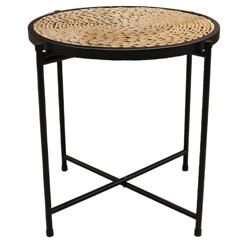 Tavolinë mesi, metalike/kashtë, e zezë/natyrale, 40x42 cm