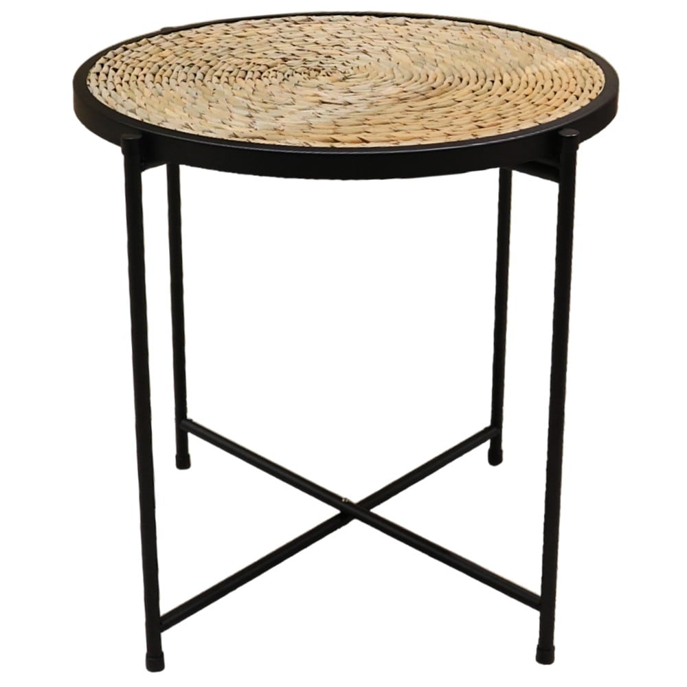 Tavolinë mesi, metalike/kashtë, e zezë/natyrale, 45x45 cm