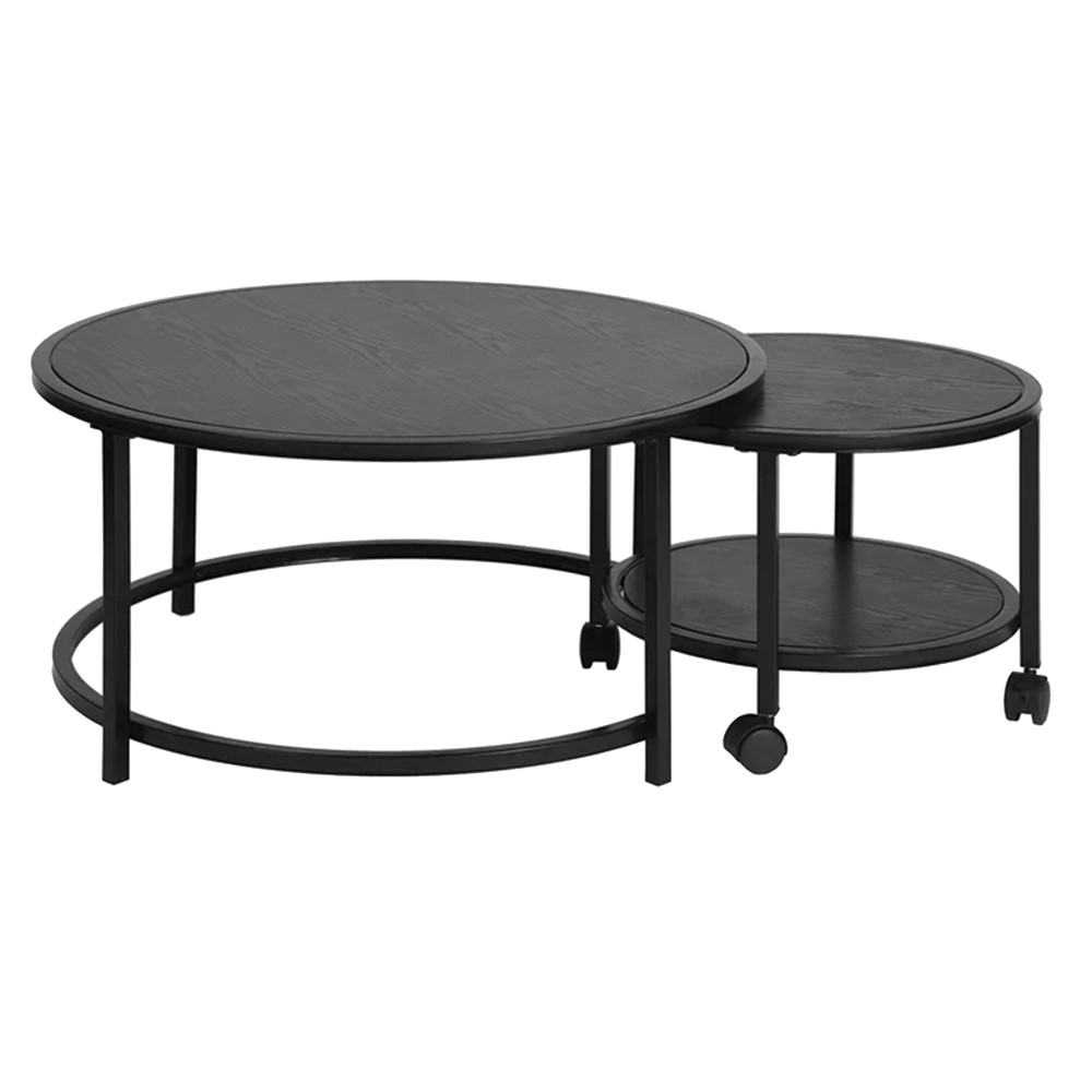 Tavolinë mesi, Neka, set 2 copë, strukturë metali, syprinë melaminë, e zezë, S-50x50xH36 cm; M-80x80xH40 cm