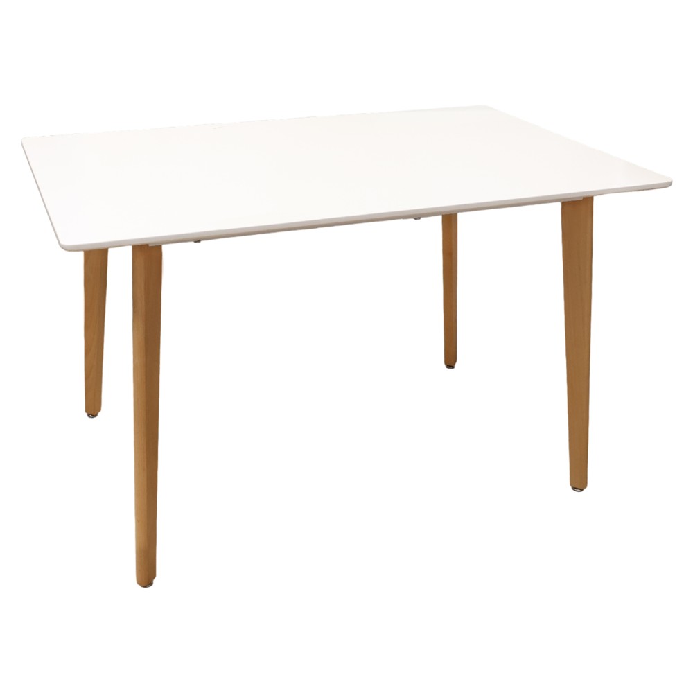 Tavolinë ngrënie, Rookie, syprinë mdf, këmbë druri, e bardhë/kafe, 120x80xH75 cm
