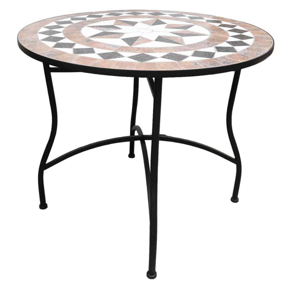 Tavolina rrethore "Mosaic" është një zgjedhje e shkëlqyeshme për të ndryshuar ambientin tuaj dhe për të sjellë një ndjenjë tërheqëse të artit dhe dizajnit. Ky produkt i dizajnuar nga metali dhe qeramika do të ndryshojë tërësisht pamjen dhe stilin e ambientit tuaj.