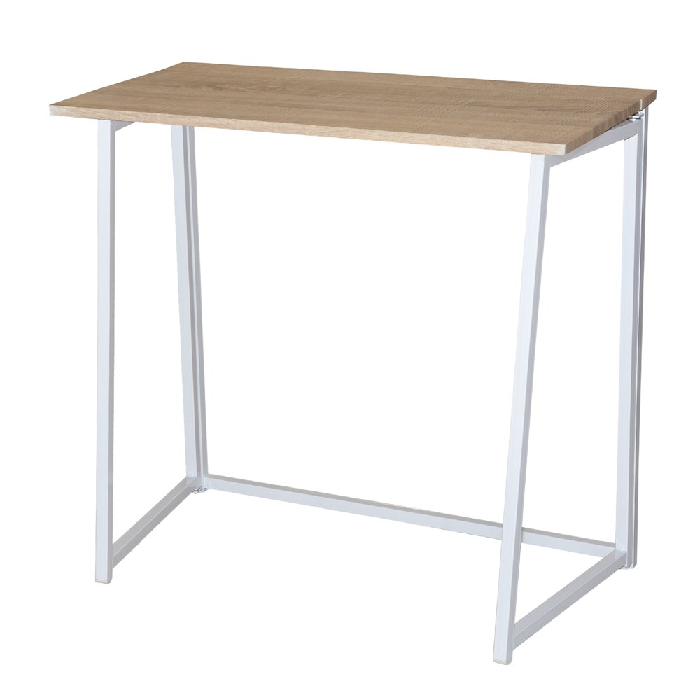 Tavolinë studimi, strukturë metalike (e bardhë), MDF i plastifikuar, lisi, 80x39.5xH74.5 cm