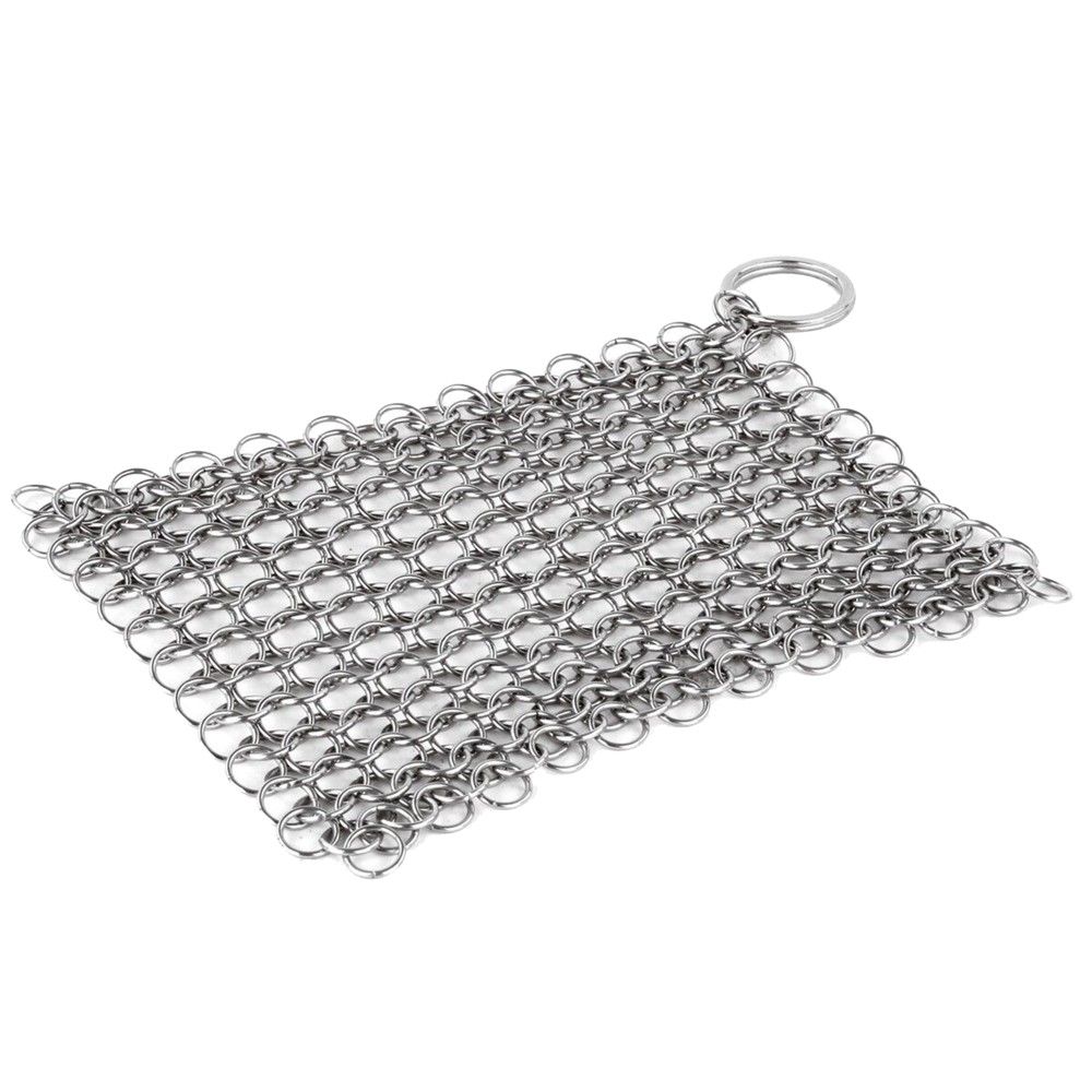 Tel pastrues, e bërë prej materiali çelik inox, gjërat e djegura nuk kanë asnjë shans. Mund ta pastroni pa mundim tiganin ose tiganin tuaj prej gize ose hekuri të farkëtuar me pastruesin e unazës - pa dëmtuar patinën e vlefshme. Struktura e unazave të ndërthurura heq butësisht mbetjet e ushqimit dhe nuk dëmton sipërfaqen e enëve të gatimit. Perdorimi; Lëreni enën e gatimit të ftohet, nëse është e nevojshme lëreni të zhyten për një kohë të shkurtër dhe fshijini me kujdes mbetjet e djegura me ujë të ngrohtë dhe pastruesin e unazës. Shpëlajeni sërish tërësisht pas pastrimit. Përpara se të vendosni enët tuaja të gatimit prej gize ose hekuri të farkëtuar përsëri në dollap, thajini gjithmonë mirë dhe kujdesuni për të si zakonisht. Pastruesi i unazës gjithashtu duhet të thahet mirë pas përdorimit.