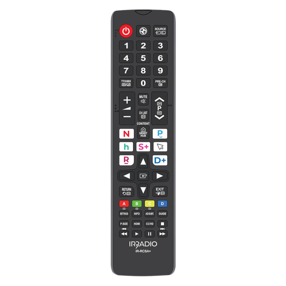 Telekomanda universale me rreze infra të kuqe për televizorët SAMSUNG. Ajo përfshin të gjitha funksionet e telekomandës origjinale, nga më të zakonshmet deri tek ato "smart". Nuk kërkon ndonjë programim, thjesht futni bateritë dhe telekomanda është gati për përdorim. Specifikimet teknike: • Ngjyra e zezë • Gati për përdorim • Furnizimi me energji elektrike: 2x 1.5 V – AAA/LR03 (nuk përfshihen) • Përmbajtja e paketimit: telekomandë • Përmasat (H x W x D): 185 x 45 x 21 mm