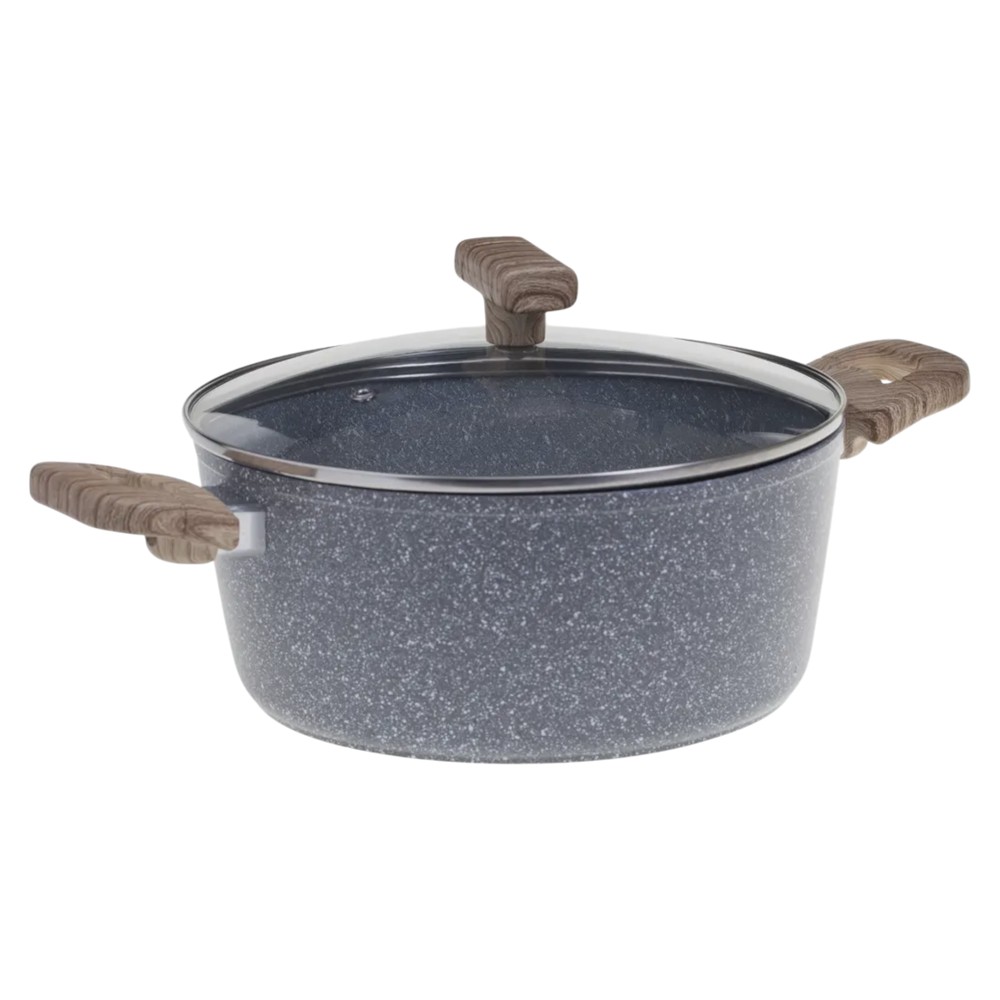 Po vlerësoni:Tenxhere me kapak me veshje guri me induksion, alumin/bakelit/xham I temperuar, gri, Dia. 24 x H. 17 cm