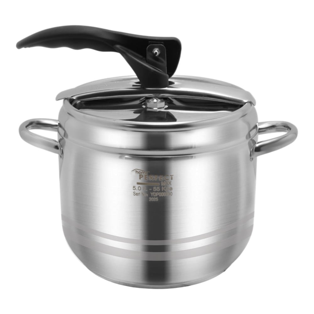 Tenxherja me presion prej materiali inoksi, 5 Lt është një zgjedhje shumë e mirë dhe një zgjidhje për një gatim të shpejtë e të shëndetshëm. Kjo tenxhere mund të përdoret në vatrat me gaz, Elektrike, qeramikë dhe vatrat me induksion. Instruksione për përdorim: lajeni mirë me ujë të bollshëm përpara përdorimit të parë. Mos përdorni detergjentë të fortë për larje. Mos e lini tenxheren bosh ndërkohë që është në zjarr sepse mund të dëmtojë fundin e tenxheres. Për të hapur kapakun kthjeni dorezën në anën e kundërt, përmbyseni dhe hiqeni. Pas çdo përdorimi lajeni mirë valvulën dhe sigurohuni që vrimat e saj të mos jenë të bllokuara.