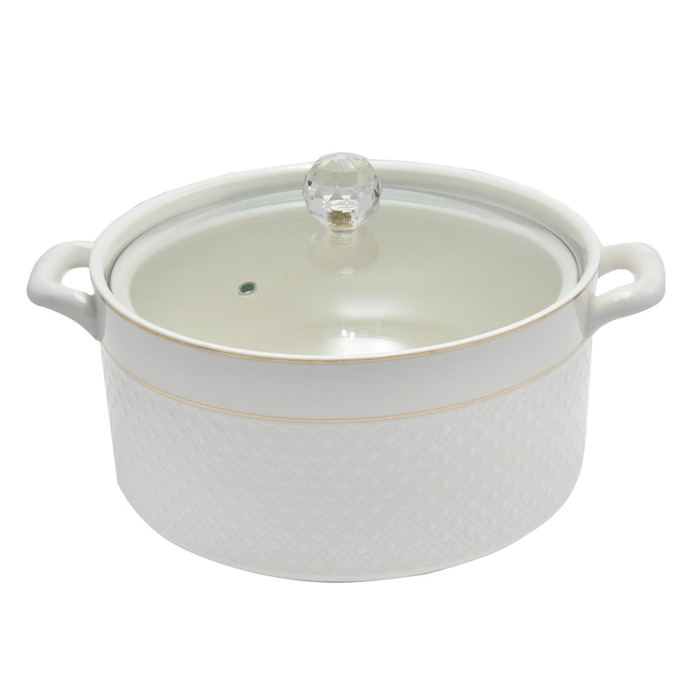 Tenxhere qeramike me kapak, e përshtatshme për servirjen e supave apo gjellërave të ndryshme. Tenxherja është dekoruese dhe kapaku ndihmon në ruajtjen e ushqimit.