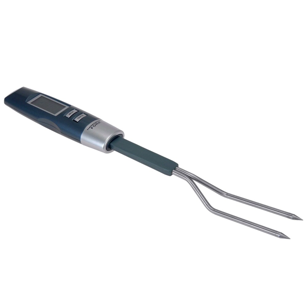 Termoemter dixhitale për matjen e mishit, në formë piruni me gjatësi 13 cm, vetë termometri ka gjatësi 36 cm. E bërë nga materiali I inoksit në pjesën e pirunit dhe plastike në pjesën e dorezës. Termoemtri ka një ekran ku tregohet temperatura e saj.I përshtatshëm për qengjin, mishin e derrit, viçin ose shpendët.