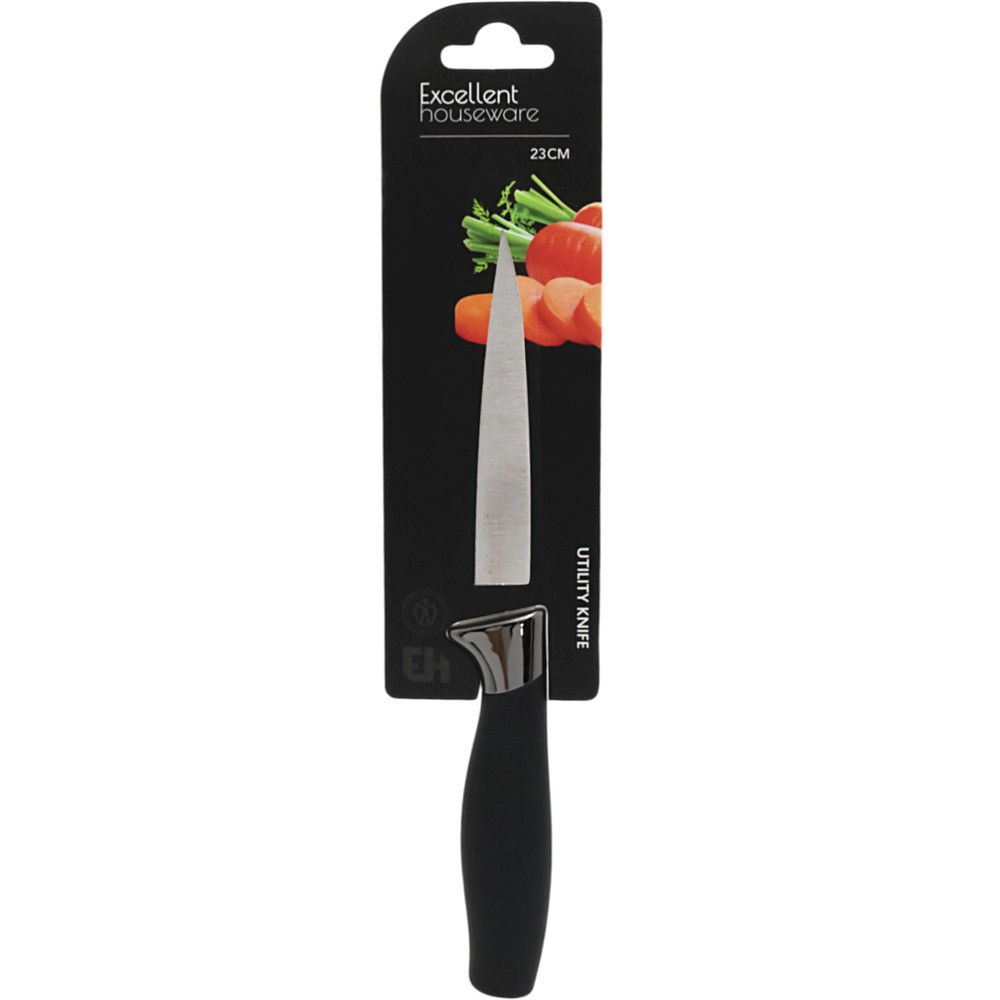 Thika e kuzhinës prej inoksi me gjatësi 23 cm dhe dorezë në ngjyrë të zezë është një vegël shumëfunksionale dhe e qëndrueshme, e përshtatshme për përdorim të përditshëm në përgatitjen e ushqimeve. E ndërtuar nga material inoks cilësor, ajo ofron mprehtësi të lartë dhe rezistencë ndaj konsumimit dhe ndryshkut. Doreza ergonomike në ngjyrë të zezë siguron kapje të sigurt dhe komode, duke e bërë të lehtë dhe të saktë prerjen e mishit, perimeve apo përbërësve të tjerë. Me dizajn modern dhe funksionalitet të lartë, kjo thikë është një ndihmës i domosdoshëm në çdo kuzhinë.