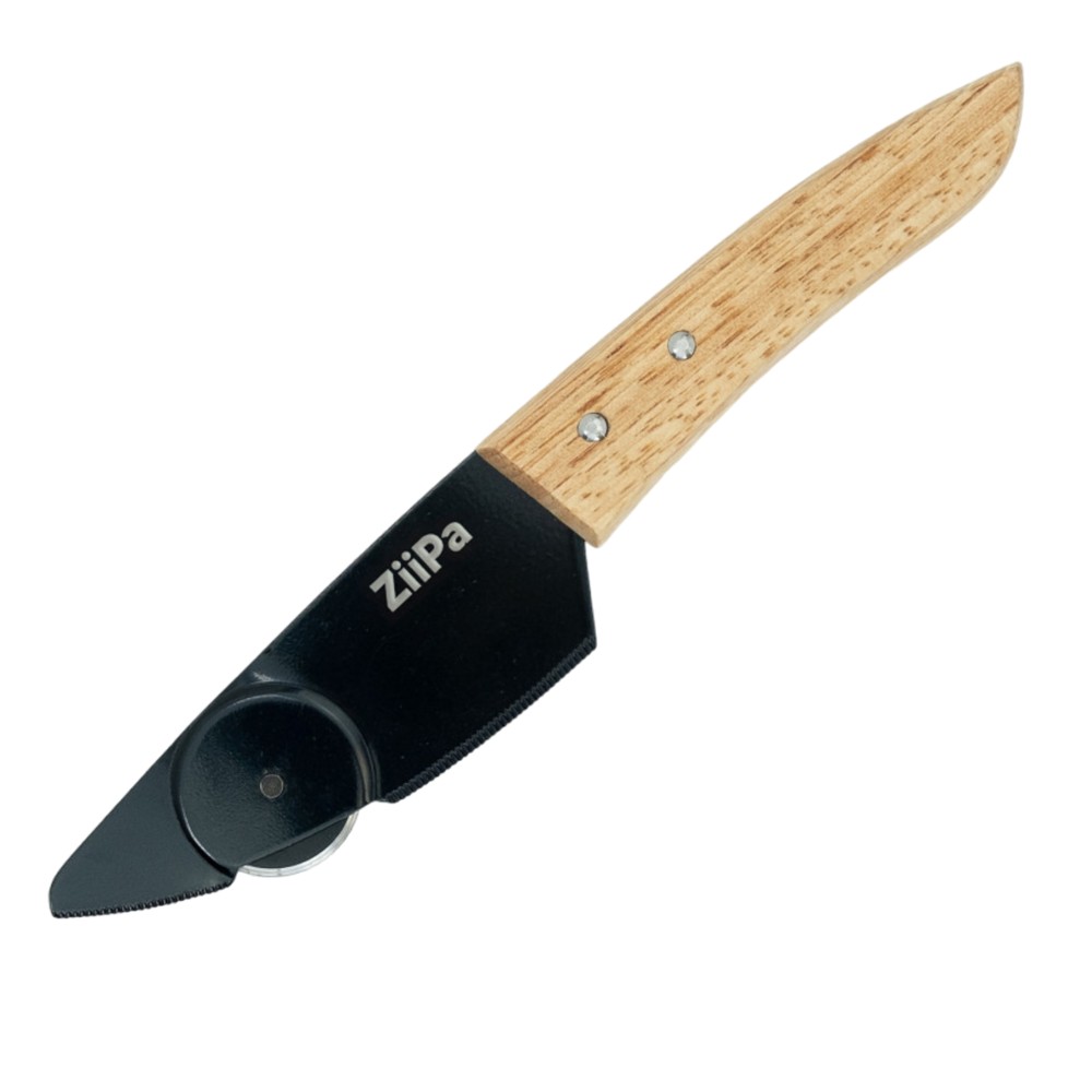 Thikë për pica, ZiiPa, prej materiali inoksi dhe druri në një përmasë prej 22.5x4 cm. Ajo vjen në ngjyrë të zezë dhe ka një dorezë mbajtëse në ngjyrë natyrale druri. Kjo thikë është një aksesor perfekt për prerjen e picave. E pajisur me një rrotë dhe një teh të mprehtë, picat do të priten pa vështirësi.