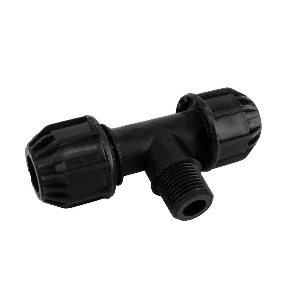 Ti me rakord 16x1/2"x16 mm mashkull prej PP me kënd 90°. Përdoret gjërësisht sot në Europe për instalimet këndore të linjave ujësjellëse, vaditjet në bujqësi etj. Kjo ti bën te mundur degezimin e rrjetit në kënd 90°. Kjo ti bashkon tubin Ø 16 me rakorderi te tjera me anë të filetove, për bashkimin me fileto rekomandojmë të përdoret teflon ndërsa tubi bashkohet me ti-në në mënyrë mekanike me rakord. E prodhuar me standarte Europiane, rezistent ndaj lëndëve gërryese dhe projektuar për t'i bërë ballë presionit deri në 16 Bar.