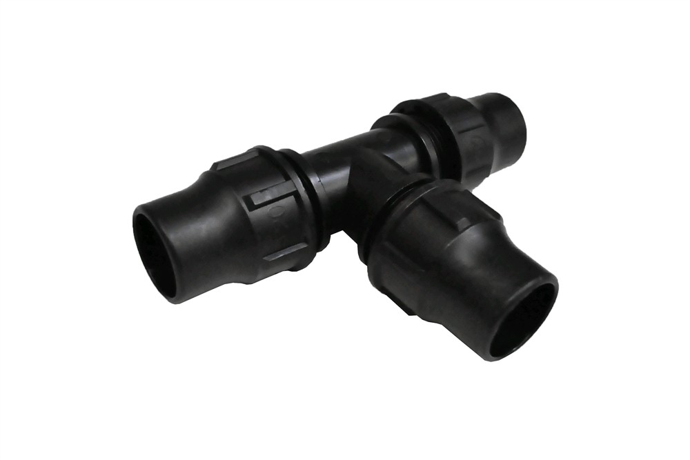 TI me rakord, 20x20x20 mm, prej PE me kënd 90°. Përdoret gjerësisht sot në Europë për instalimet këndore të linjave ujësjellëse, vaditjet në bujqësi etj. Kjo TI bën të mundur degëzimin e rrjetit në kënd 90°. Kjo TI bashkon tre tuba të rrjetit me anë të shtrëngimit mekanik me rakord. E prodhuar me standarte Europiane, rezistent ndaj lëndëve gërryese dhe projektuar për t'i bërë ballë presionit deri në 6 Bar.