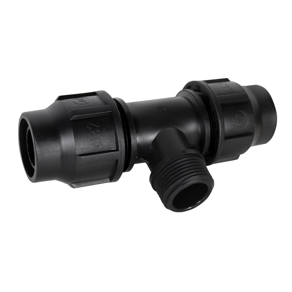 Ti me rakord 32x1"x32 mm mashkull prej PE me kënd 90°. Përdoret gjërësisht sot në Europe për instalimet këndore të linjave ujësjellëse, vaditjet në bujqësi etj. Kjo ti bën te mundur degezimin e rrjetit në kënd 90°. Kjo ti bashkon tubin LDPE Ø 32 me rakorderi te tjera me anë të filetove, për bashkimin me fileto rekomandojmë të përdoret teflon ndërsa tubi bashkohet me ti-në në mënyrë mekanike me rakord. E prodhuar me standarte Europiane, rezistent ndaj lëndëve gërryese dhe projektuar për t'i bërë ballë presionit deri në 6 Bar.