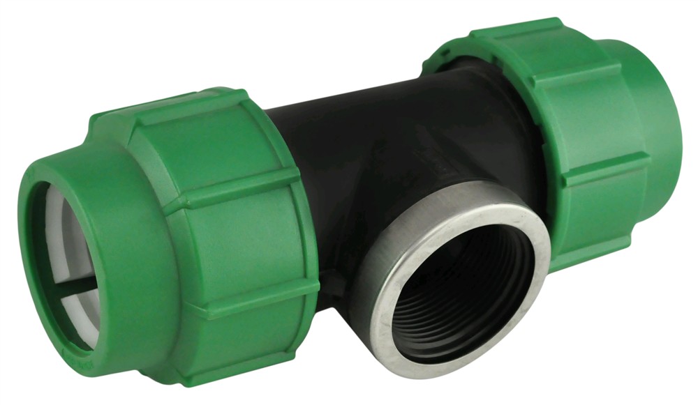 Ti me rakord 50x1-1/2"x50 mm femër prej PP me kënd 90°. Përdoret gjërësisht sot në Europe për instalimet këndore të linjave ujësjellëse, vaditjet në bujqësi etj. Kjo ti bën te mundur degezimin e rrjetit në kënd 90°. Kjo ti bashkon tubin Ø 50 me rakorderi te tjera me anë të filetove, për bashkimin me fileto rekomandojmë të përdoret teflon ndërsa tubi bashkohet me ti-në në mënyrë mekanike me rakord. E prodhuar me standarte Europiane, rezistent ndaj lëndëve gërryese dhe projektuar për t'i bërë ballë presionit deri në 10 Bar.