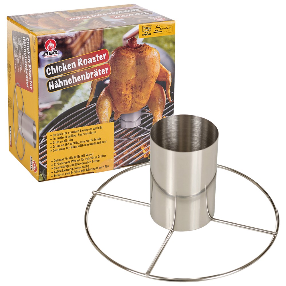 Tigan barbekjuje ."BBQ collection", inoks, me mbajtëse për pulë, 20 x20x10 cm, argjendi, 1 copë