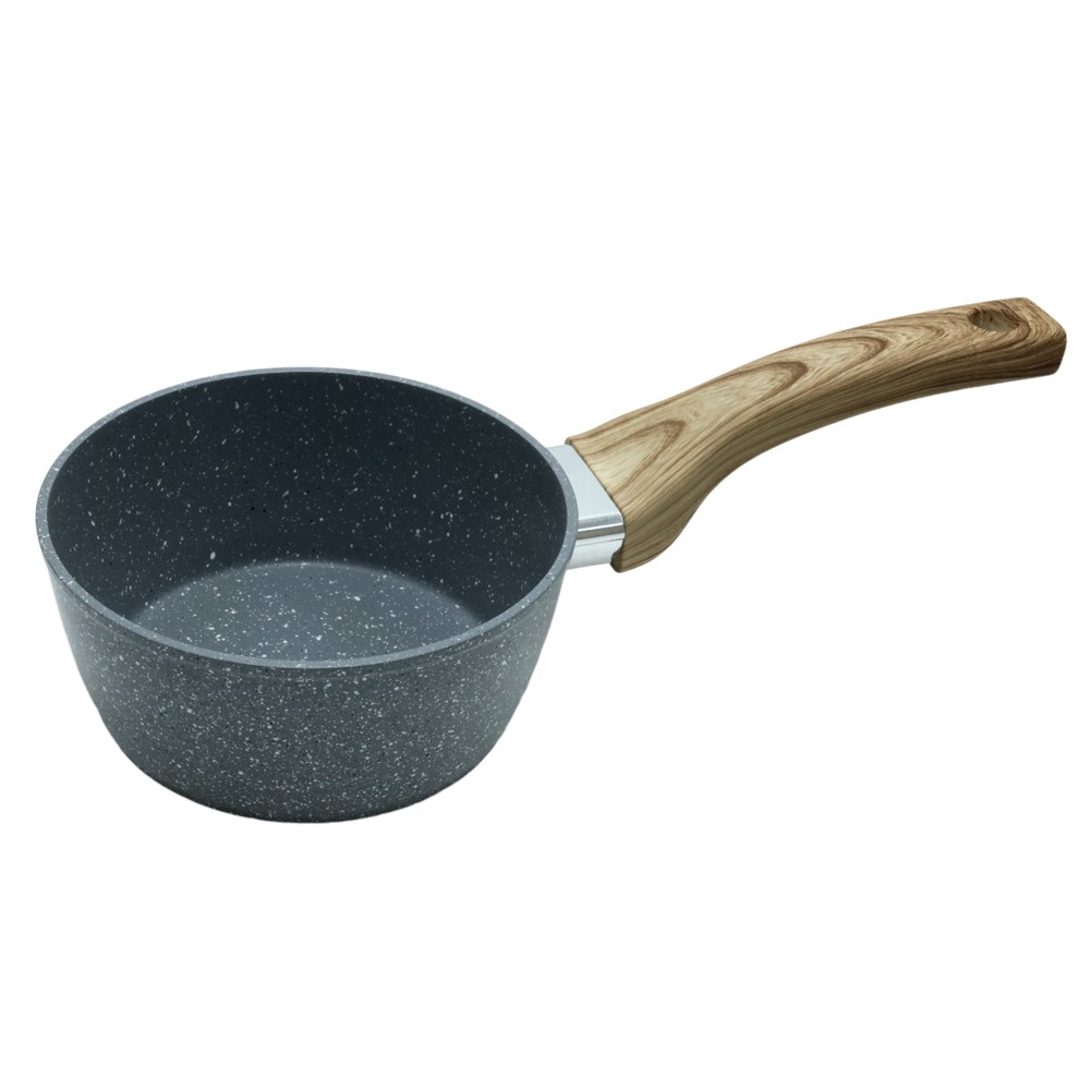 Tigan i thellë me shtresë kundër ngjitjes dhe veshje guri me induksion, alumin/bakelit, gri, Dia. 16 x H. 11 cm