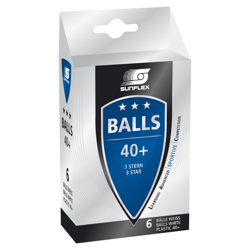 Top ping-pongu, Sunflex 3-Star, 6 cope, PVC, ngjyra e bardhe