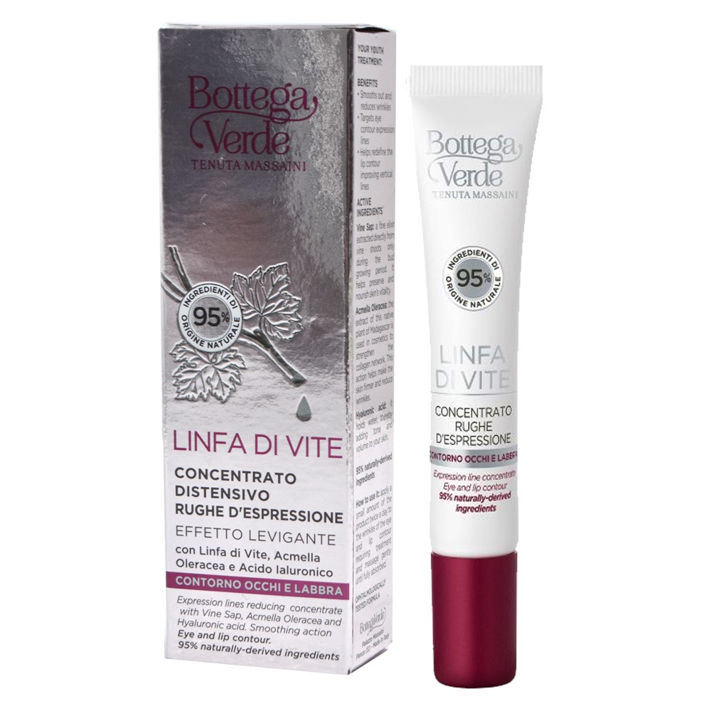 Trajtues anti-rrudhë për zonën e buzëve dhe të syve, Linfa di Vite, Bottega Verde, 10 ml