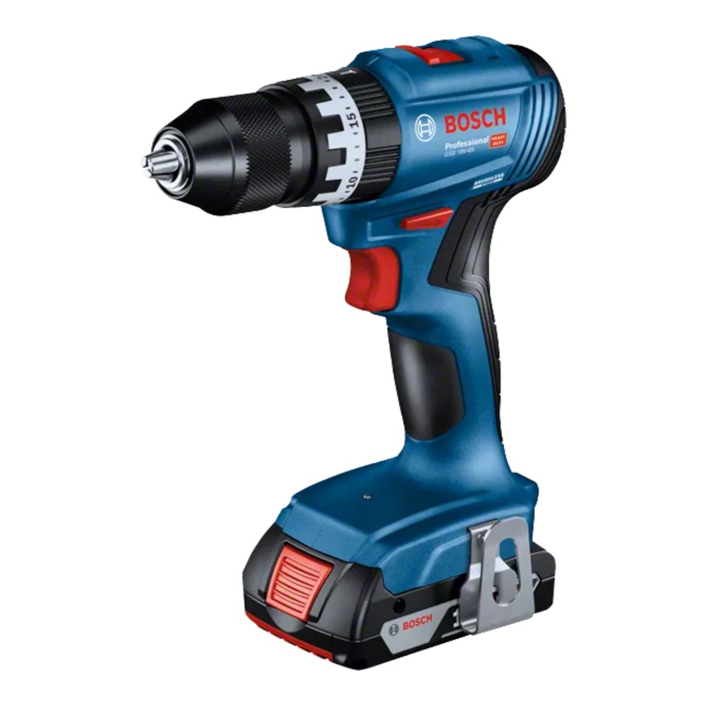 Trapani me bateri GSB 18V-45 ka një motor pa karboçina për një jetë të gjatë dhe fuqi për të gjitha aplikimet e zakonshme. Ai arrin një moment përdredhës prej 45 Nm dhe një shpejtësi prej 1900 rpm. Falë dizajnit të tij të lehtë dhe kompakt, mund të përdoret kudo dhe mund të mbahet lehtësisht në kapësen e rripit shoqërues. GSB 18V-45 Professional është i përshtatshëm për vida me një diametër maksimal shpimi prej 8 mm. Ofron një diametër maksimal të shpimit deri në 35 mm në dru dhe deri në 10 mm në çelik dhe murature. Trapani me bateri GSB 18V-45 është e përshtatshme me të gjitha bateritë dhe karikuesit Bosch Professional 18V.