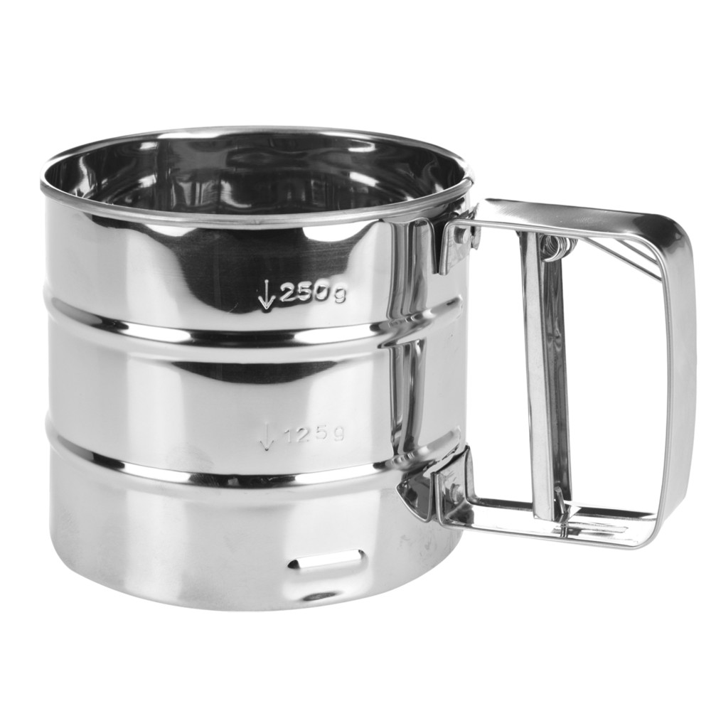 Trazuesi i pluhurit prej inoksi me ngjyrë argjendi dhe përmasa Dia. 10xH9.5 cm është një mjet praktik dhe i qëndrueshëm për përzierjen e pluhurave apo përgatitjen e përbërësve të ndryshëm në kuzhinë. Materiali inoks siguron rezistencë ndaj korrozionit dhe përdorim afatgjatë, ndërsa dizajni kompakt e bën të lehtë për t’u mbajtur dhe përdorur. Ngjyra argjendi i jep një pamje moderne dhe profesionale, që përshtatet lehtësisht me çdo ambient kuzhine. Me përmasat e tij, trazuesi është ideal për përzierje të saktë dhe efikase, duke e bërë çdo përgatitje më të lehtë dhe të shpejtë.