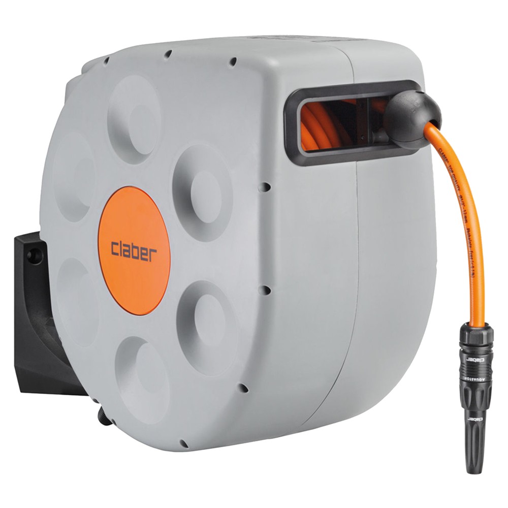 Mbështjelle tubi me mekanizëm automatik "Sistem bllokues i bute", tubi pas daljes mbështet me sipërfaqe e cila nuk e lejon qe te kthehet mbrapsh. Mbeshtjellesi kapet ne mure dhe me ane te nje boshti i cili e lejon te rrotullohet 180 °, gjatesia e tubit nga mbeshtjellesi deri tek rubineti i furnizimit (2 m.) dhe kapje me klik 3/4 ". Tubi 20m ka nje sperkates te rregullueshem per te nxjerre ujin ne formen e deshiruar.