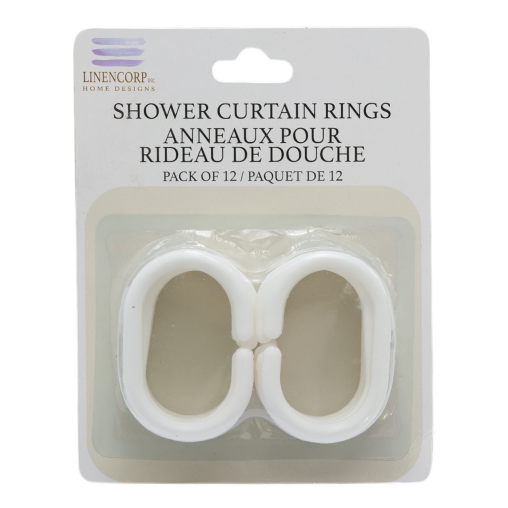 Unaza për perde dushi, 12 copë. Prodhuar ne material plastik dhe ngjyrë të bardhë këto unaza jan shumë rezistente ndaj ujit. Në formë ovale unazat do jenë gjithnjë të qëndrueshme.