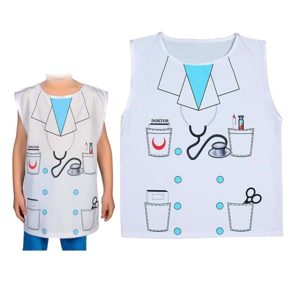 Uniformë doktori për fëmijë, prej materiali poliestre, në ngjyrë të bardhë, me printime të ndryshme. Përdoret nga fëmijët për të luajtur dhe ndihmon në zhvillimin e aftësive motorike, aftësive të koordinimit dhe zhvillimin e aftësive ndërpersonale, përmes lojës në role. Mund të përdoret si kostum për fëmijë gjatë festës së Halloween-it. Materiali përbërës nuk ka përmbajtje toksike apo të dëmshme për fëmijët dhe produkti është i çertifikuar për siguri në përdorim. Ky produkt është i përshtatshëm për fëmijë të moshës mbi 7-12 vjeç. Rekomandohet të lahet me dorë apo në lavatriçe në temperaturën 30 °C.