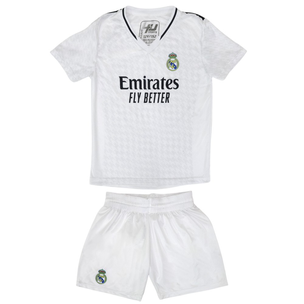 Ky kostum futbolli për fëmijë i inspiruar nga skuadra e njohur e futbollit Real Madrid është i përsosur për çdo tifoz të vogël të futbollit. Dizajni i tij është një përpjekje për të sjellë ngjyrat tradicionale të klubit, duke i dhënë mundësinë fëmijës të ndjehet si një yll i futbollit.Ky kostum është ideal për ndeshje, stërvitje apo aktivitete të tjera sportive, duke i mundësuar fëmijëve të shprehin pasionin e tyre për futbollin dhe Real Madridin, ndërkohë që janë të rehatshëm dhe të sigurt.