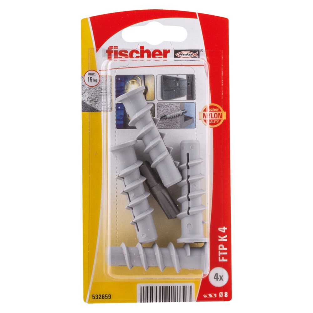 Transmetimi optimal i forcës përmes zgjerimit të katërfishtë. Kjo mundëson vlera të larta mbajtëse në materialet e ndërtimit të ngurta dhe me vrima. Instalim i thjeshtë: buza e kunjit parandalon rrëshqitjen më thellë në vrimën e shpimit. Nuk ka presion zgjerimi në hyje te upës. Kjo nuk do të dëmtojë pllakat ose suva.