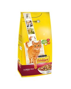Ushqim i plotë për macet e rritura. Përbërja: Drithëra, Mish dhe Derivate të Kafshëve (10.0% *), Ekstrakte Proteinash Vegjetale, Vajra dhe Yndyrna, Derivate Vegjetale, Kripëra Inorganike, Maja dhe Perime (Kroketa jeshile, portokalli dhe e bardhë: 0.13% ekuivalente me perime të thata 1). * Ekuivalente me 20% mish dhe produkte shtazore të rindërtuara, kroketa kafe të çelët dhe kafe të kuqe: cat. Të paktën 4% lepur dhe 4% pulë. Aditivët: Aditivët ushqyes: IU / kg: Vit A: 12 500, Vit D3: 1 000. mg / kg: Fe (E1): 145, I (E2): 2,5, Cu (E4): 35, Mn ( E5): 16, Zn (E6): 183, Se (E8): 0,25. Taurine: 870. Me ngjyra dhe antioksidantë. Përbërësit: Proteinat: 30,0%, Përmbajtja e yndyrës: 10,0%, Hiri i papërpunuar: 7,5%, Fibra e papërpunuar dietetike: 2,5%.