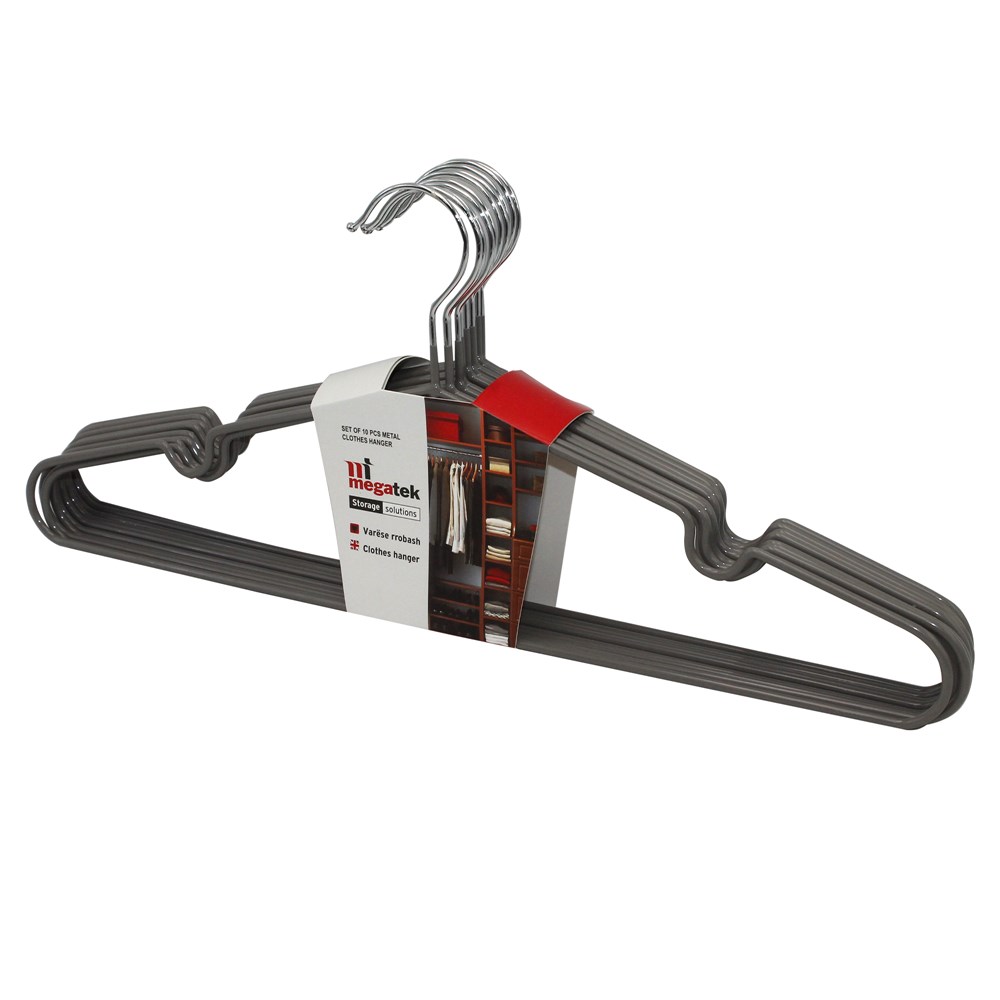 Varëse rrobash kremastar, set 10 copë, MEGATEK, metal i veshur, gri, 40.5x0.4xH17.5 cm