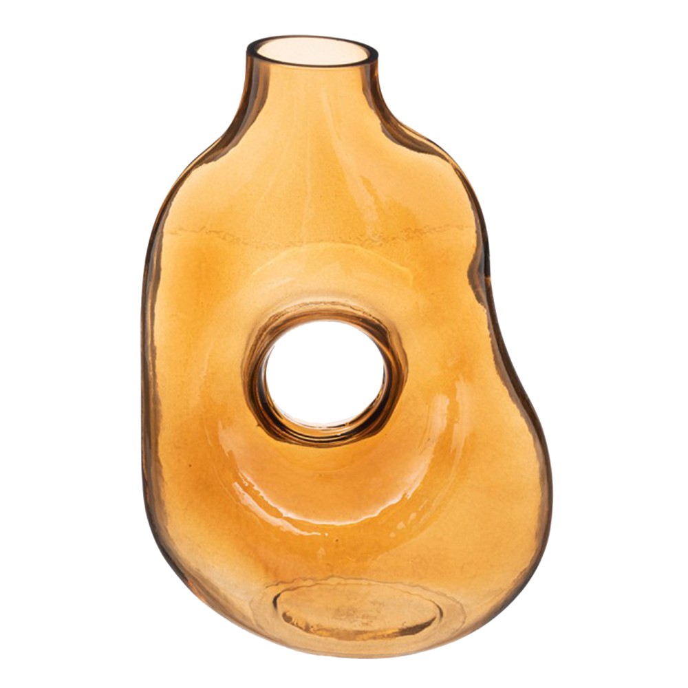 Vazo dekorative, Donut, qelq, portokalli, 18x10xH25 cm