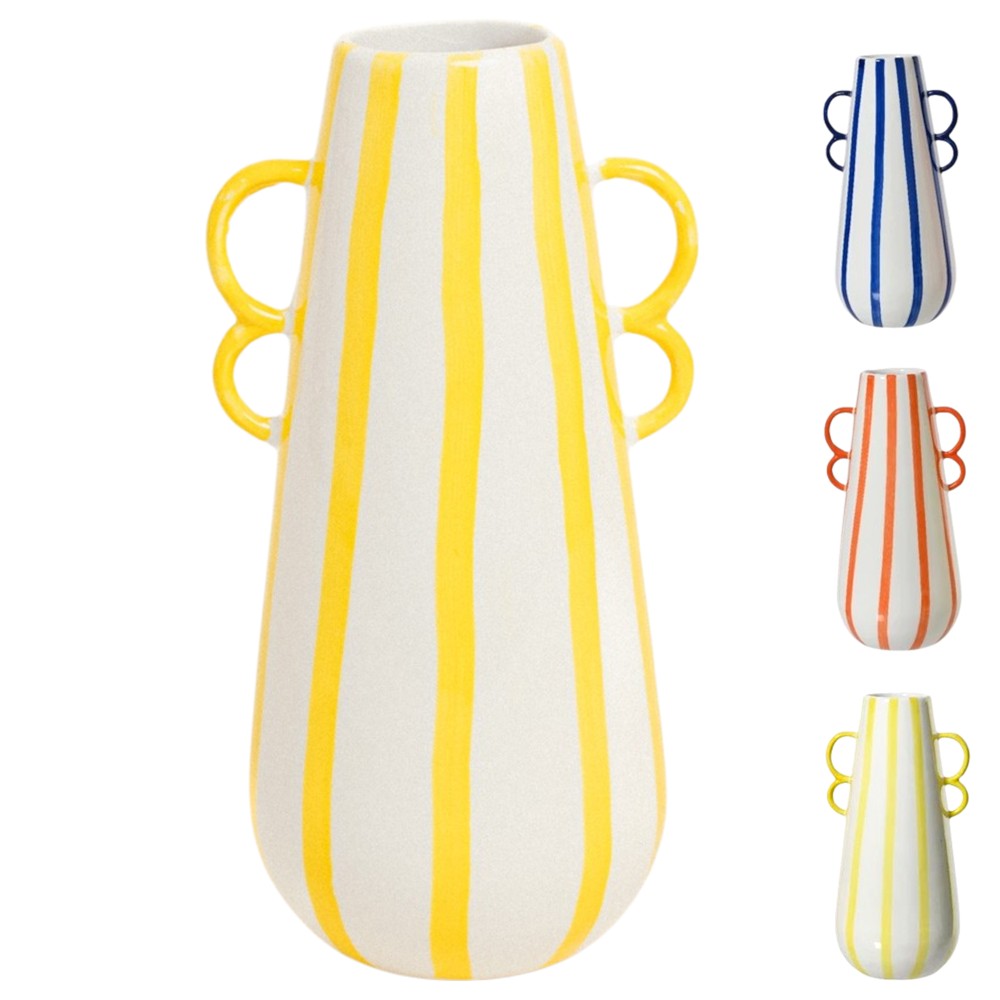 Vazoja dekorative është aksesori perfekt për ambjentet tuaja të brendshme. Ka një ndërthurje mes stilit tradicional dhe atij modern. Ka një dizanj unik dhe është e përbërë nga një material qeramike cilësore. Mund ta përdorni për të krijuar kompozime me buqeta lulesh, duke i shtuar një prekje elegante ambjenteve tuaja.